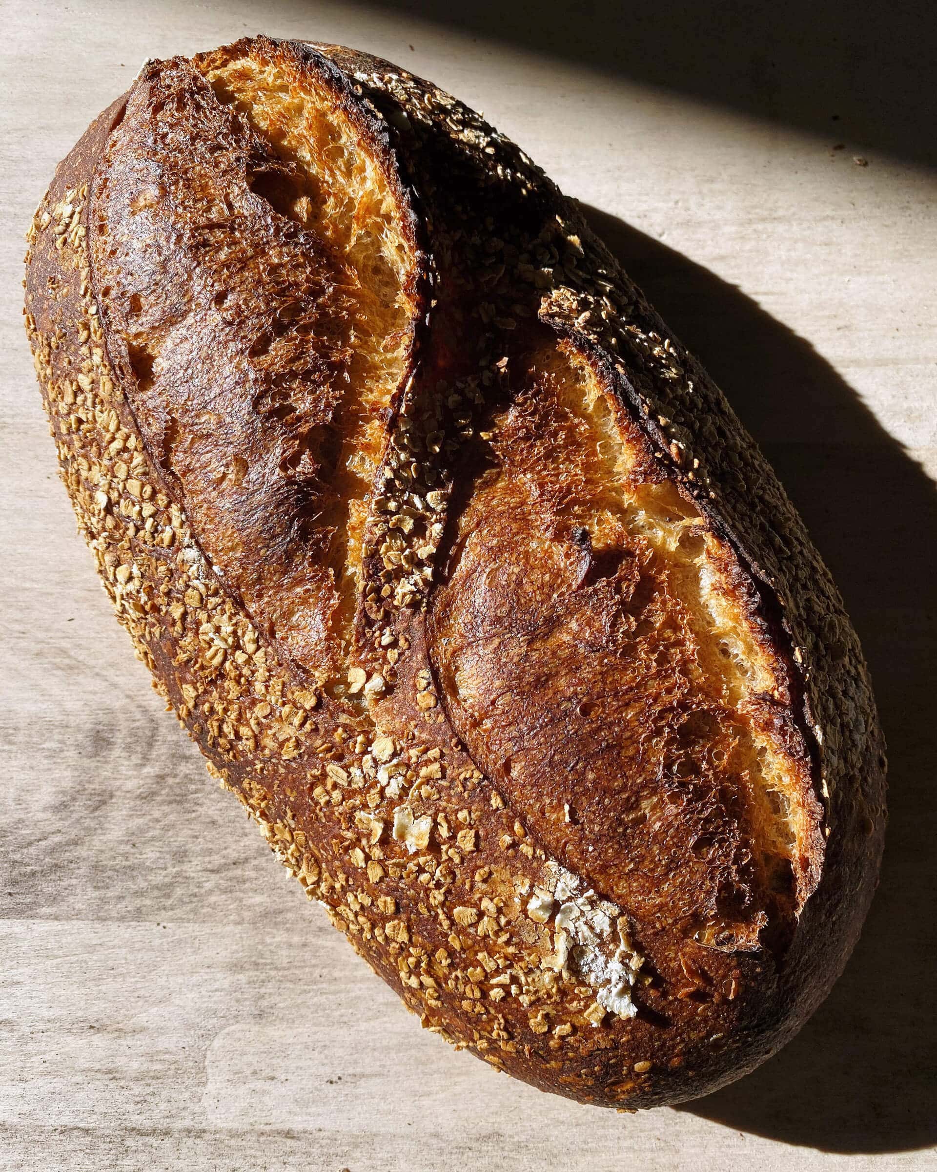 A flavorful—and wholesome—loaf of sourdough bread with whole spelt, whole rye, and whole wheat.