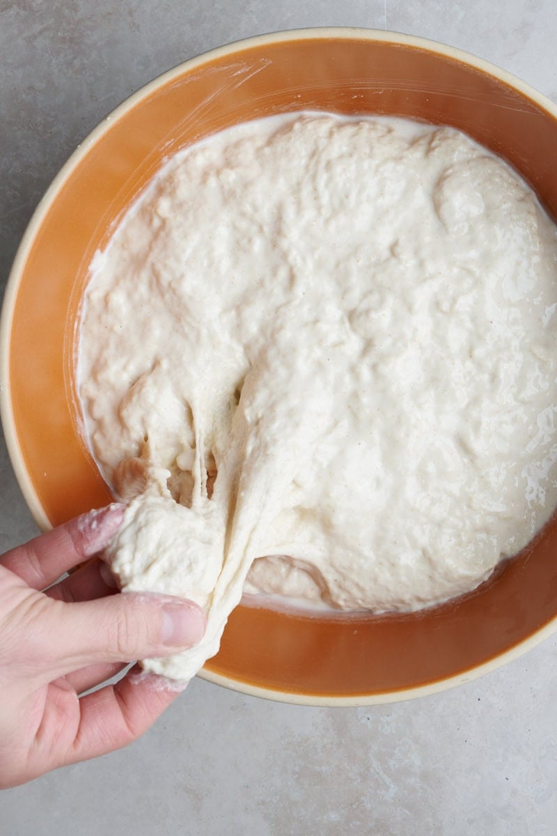 The thing is, even if the dough could have technically benefitted from a little more hand mixing before you stopped, you can always correct it by giving it more stretches and folds in bulk fermentation. It’s always better to err on the side of adding in one more set of stretches and folds, too.