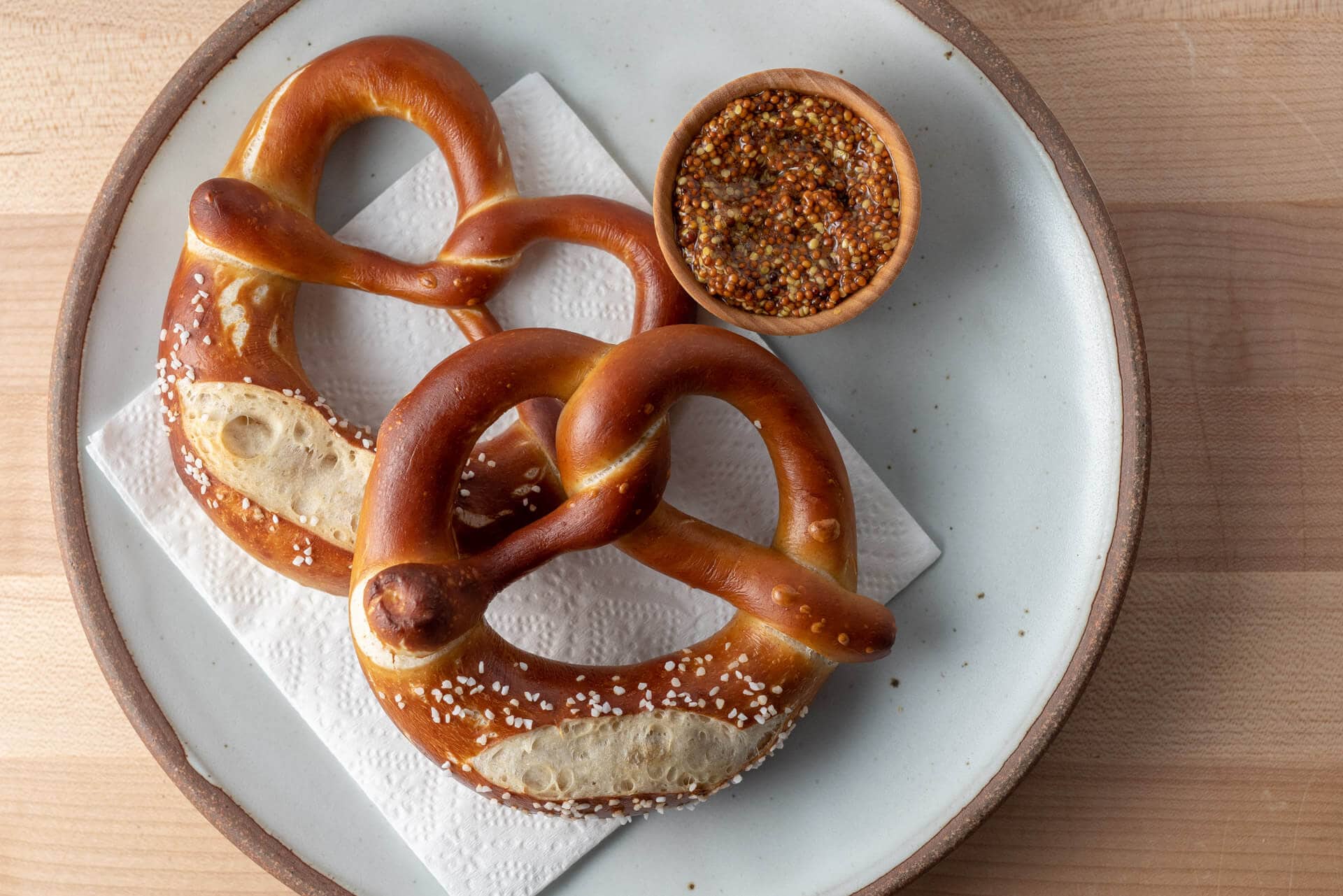 - Using lye for the pre-bake bath imparts that classic pretzel color, flavor, and texture