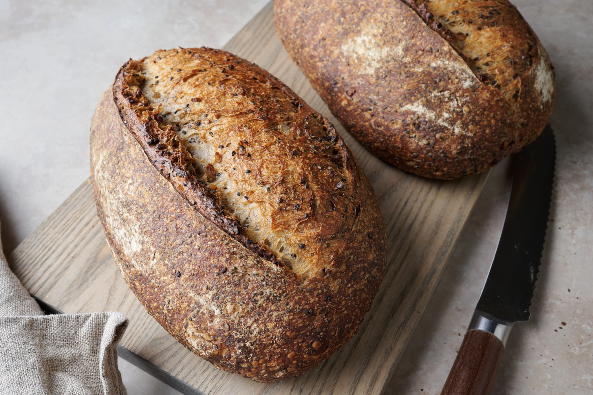 Rice and sesame lend an earthy flavor, tender interior, and golden crust to this sourdough bread.