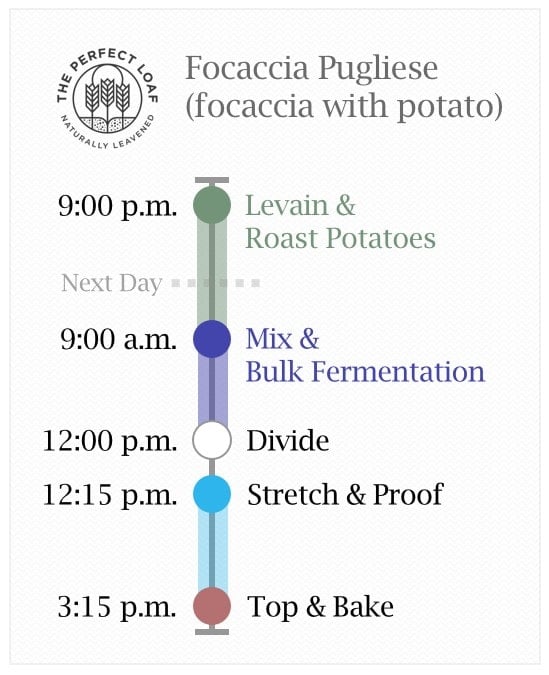 You can choose to roast the potatoes either the night before when you make the levain or first thing in the morning. Be sure you give the roasted potatoes enough time to cool before mixing them into the dough.