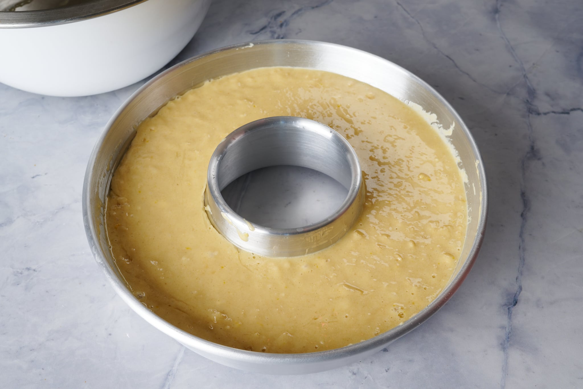 - Preheat the oven with a rack in the middle to 350°F (180°C). Grease a 9-inch ring mold pan with neutral oil.