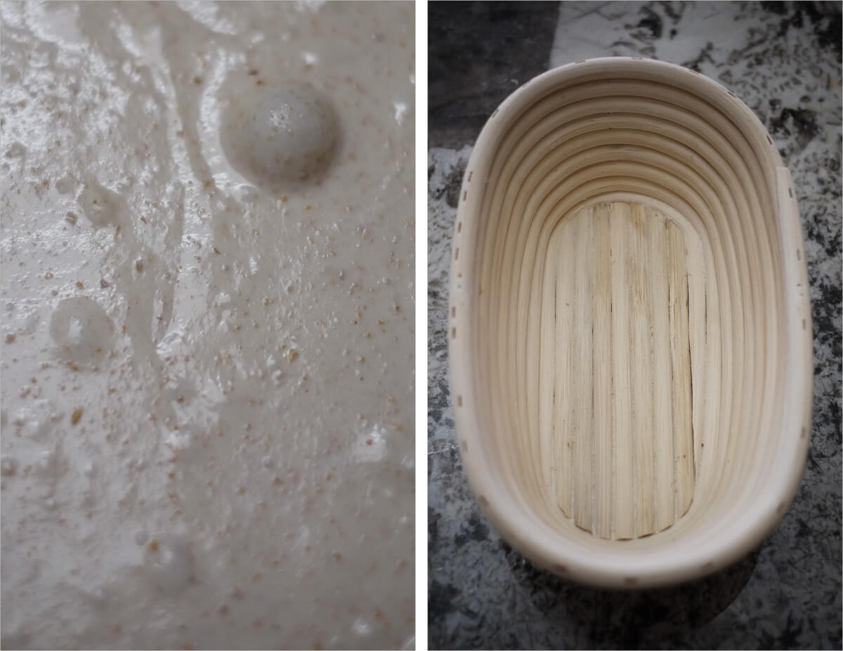 I could probably pull out hundreds of gems from Hamelman’s essential reading, Bread, and each time I go back to reference something my eye catches one that strikes a chord. Attentiveness, now that is an essential thing with baking. You don’t realize just how vital it is to step back for a second and observe what you, and the dough, is doing from time to time. Does it look alive and puffy? Does it look like it has enough strength? Are you mixing to sufficient development and enough rise during bulk fermentation? In this post on country sourdough with less levain and a longer autolyse we’ll look at all of this.