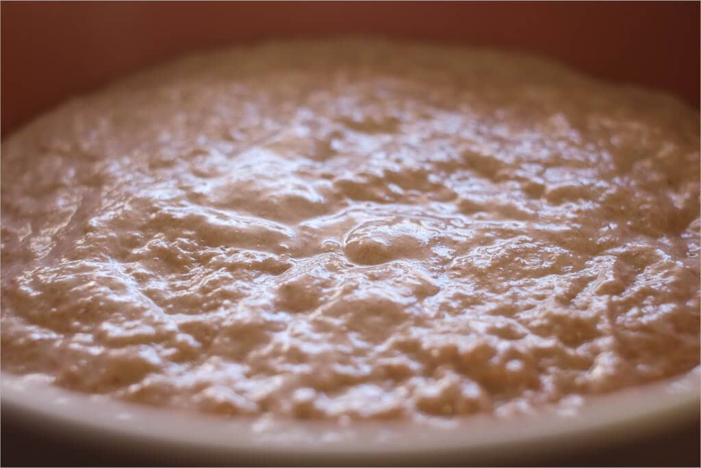 5. Cover with plastic wrap and keep covered in a warmish place in your kitchen at around 77°F (25°C)