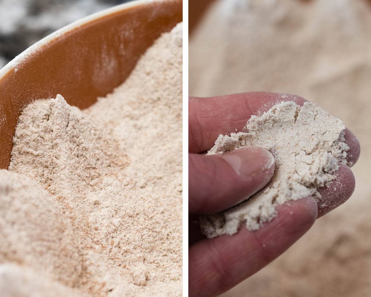 If you’re milling your wheat try to mill as finely as your mill will reasonably go. You can see in the picture below how fine I’m able to mill with my GrainMaker and that you can pick out small bran/germ flecks in the flour. As I mentioned above, I’ve tried this recipe a few times using bagged walnuts and also freshly shelled walnuts. I’d say the taste is very similar between the two. Fresh walnuts do have a slightly better taste to them and have far less “dust” (not sure what it is really, small walnut particles?), but shelling them takes quite a bit of effort. If you have access to walnuts in their shell, and a few spare minutes, by all means, give it a try.