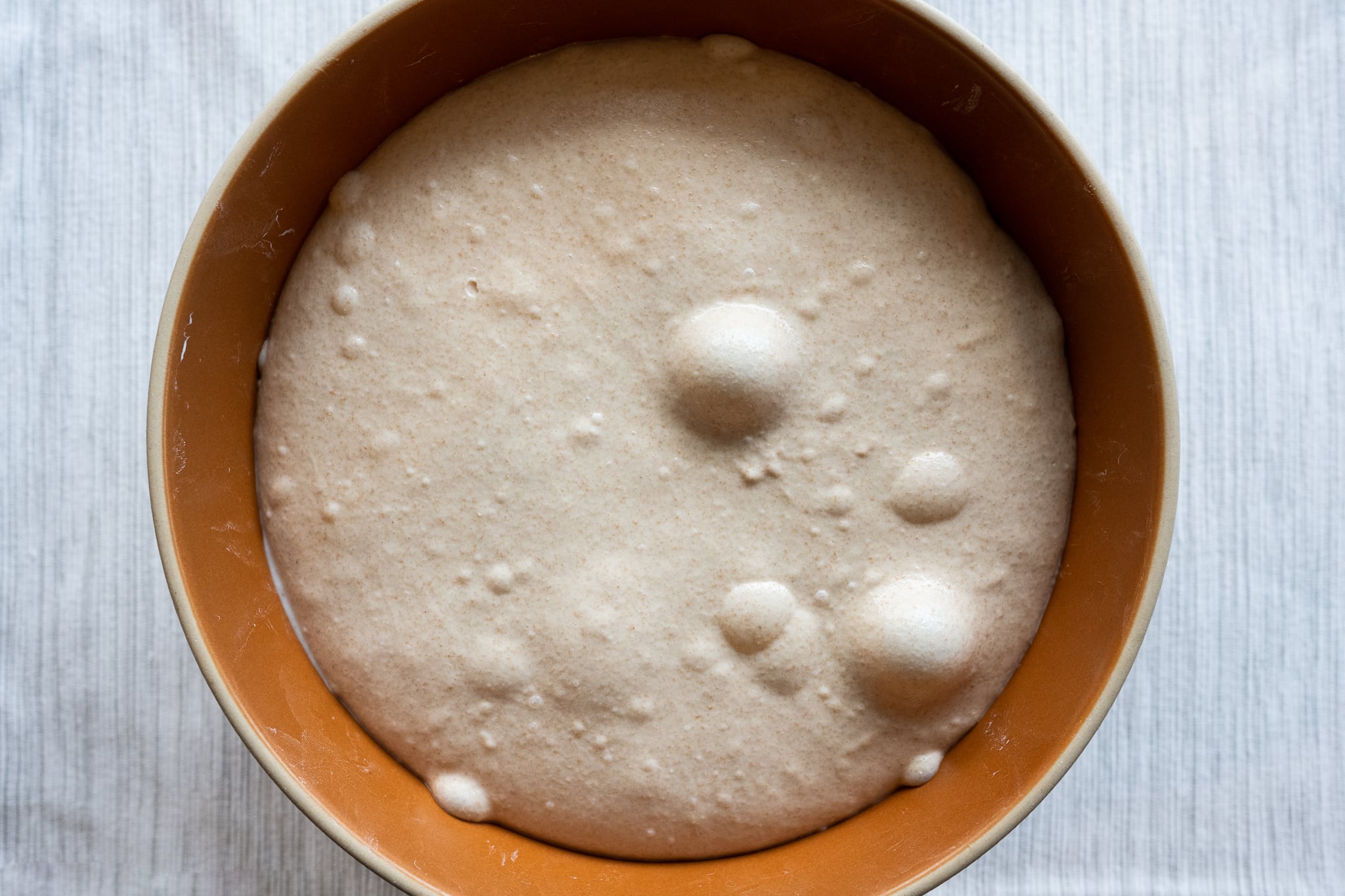 Finely mill 337g of Yecora Rojo wheat flour (or another hard red wheat variety). I milled the flour on the finest setting on my KoMo grain mill.