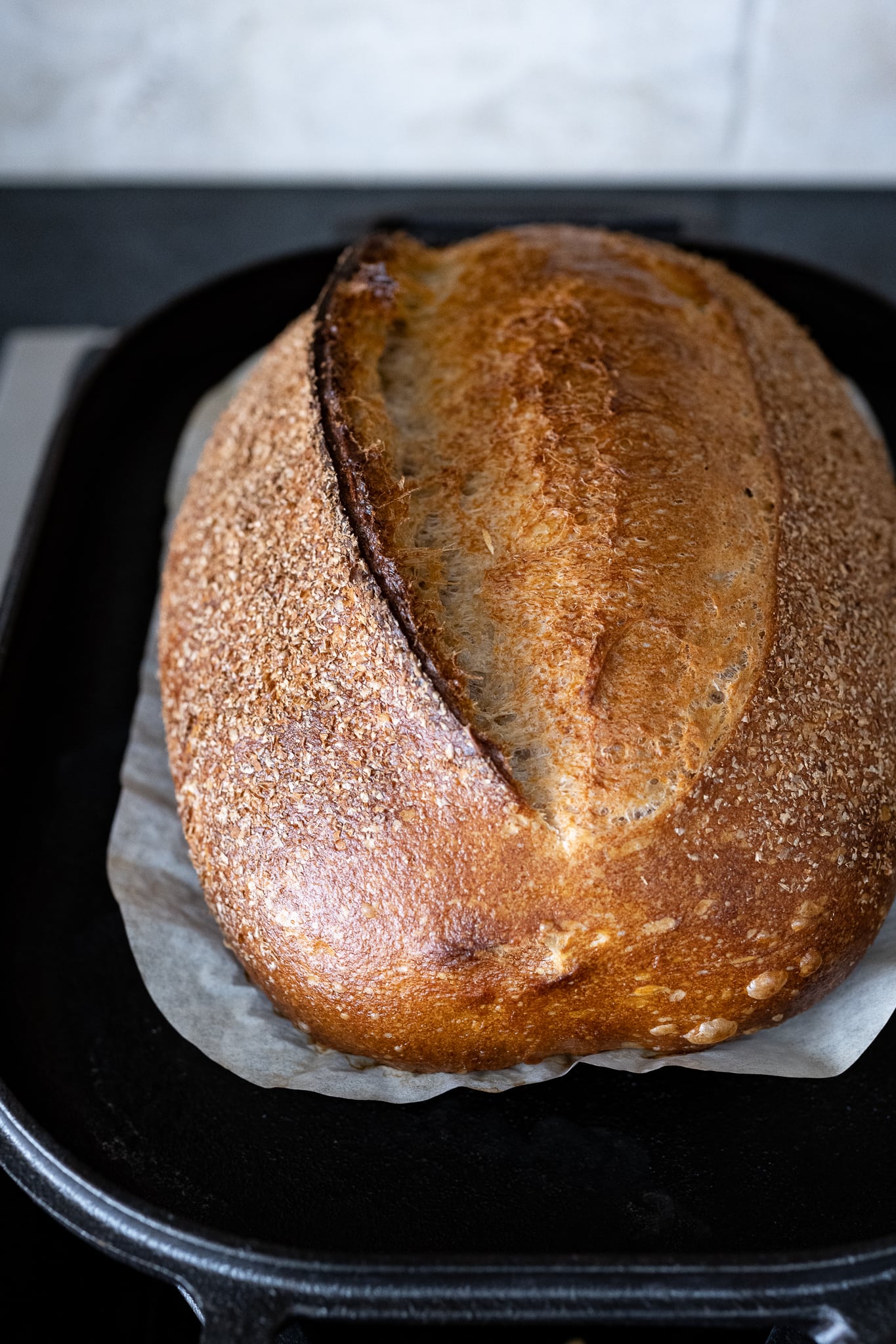 It didn’t take much effort for me to want to continue test-baking this bread. The flavor and texture are so spectacular, and the simplicity of it all was so refreshing. Sometimes, removing complexity yields the best results, and it’s not often that we find the outcome exceeds the sum of the inputs, but when it happens, it’s all that much more satisfying. And what better way to start a week than to have fresh, wholesome bread made with a simple mix of flour, an effortless hand mix, and long-fermented for additional flavor and nutrition?
