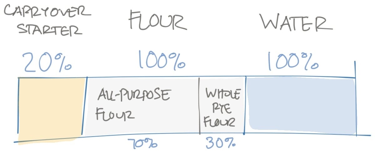 | 20g | Ripe sourdough starter carryover | 20% |