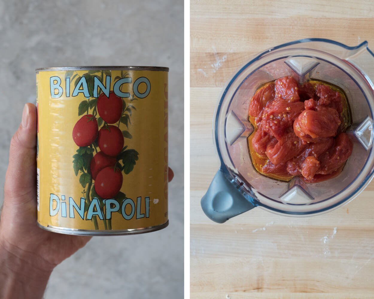 • One 28oz. can whole peeled tomatoes (Bianco DiNapoli or San Marzano)