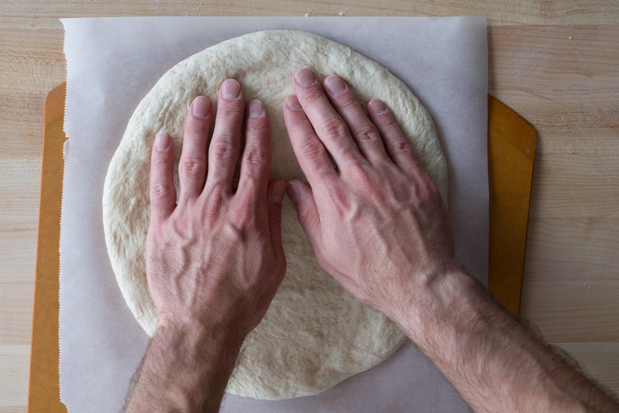 Additionally, because I advise using parchment paper to launch your pizza into the oven (more below), increasing the hydration into the ’70s is possible (as you increase hydration, it becomes harder and harder to shape and transfer the pizza from your pizza peel to the oven).