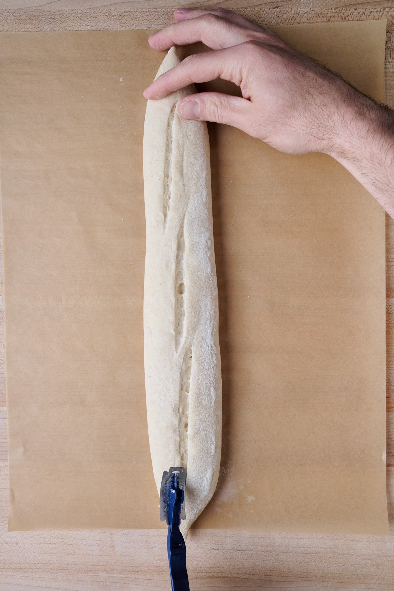 Shaping baguettes requires practice through repetition (see my baguette shaping guide page for more instructions). Try not to get discouraged when shaping; take it slow and focus on one motion at a time.