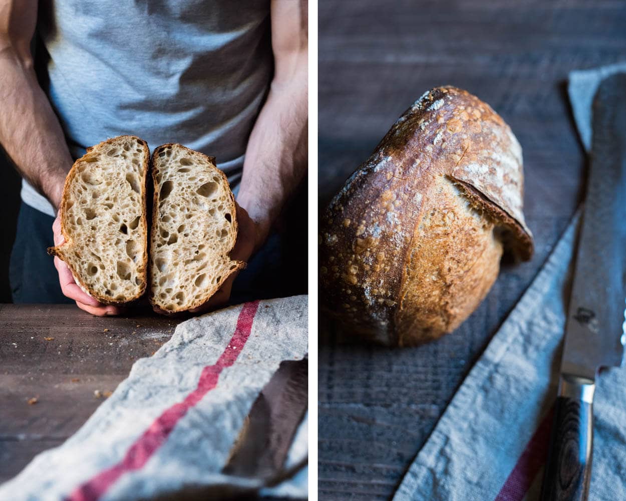 This sourdough bread is one of my favorite recipes. It’s a highly hydrated dough that results in a loaf with an open and lacey interior contrasted by a thin, crispy crust.