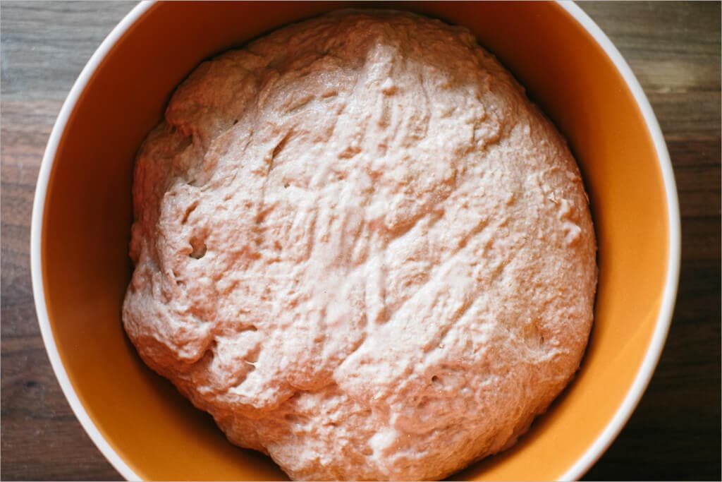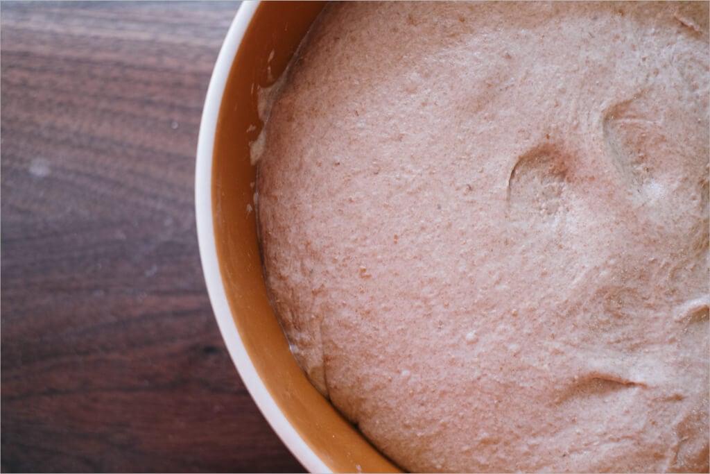 One more thing to keep in mind: whole wheat flour ferments much faster than white flour. Due to the increased nutrients (bran & germ) your starter will go into overdrive when fed with so many goodies. Keep an eye out during your bulk fermentation step; things can go too far very fast. If you’re using a clear-sided container be on the lookout for those bubbles on the sides and bottom, they are a good indicator of when fermentation is rapidly increasing.